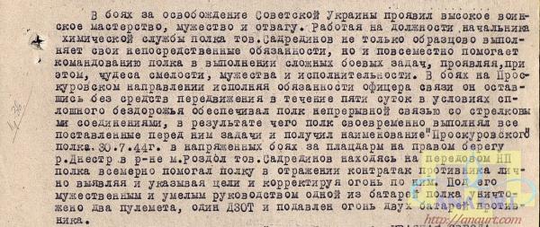 В ноябре 1944-го в боях за г. Самбор батарея собьет еще два самолета и отличившихся наградят орденами Боевого Красного Знамени. К награде представят и командира батареи, но не вручат по причине национальной принадлежности. Тогда Р. Садрединов узнал о депортации. Затем бои на территории Польши, Германии, Чехословакии. После окончания войны дивизию расквартируют в Австрии, и Р. Садрединов получит разрешение навестить родных.