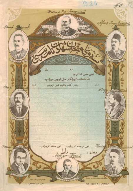 Аттестат выпускника учебного заведения с изображениями Исмаила бея Гаспринского