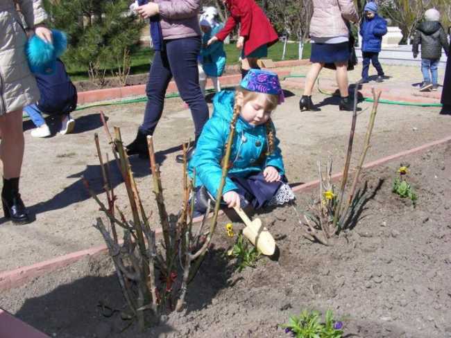 Малыши высадили цветы у памятника Гаспринскому