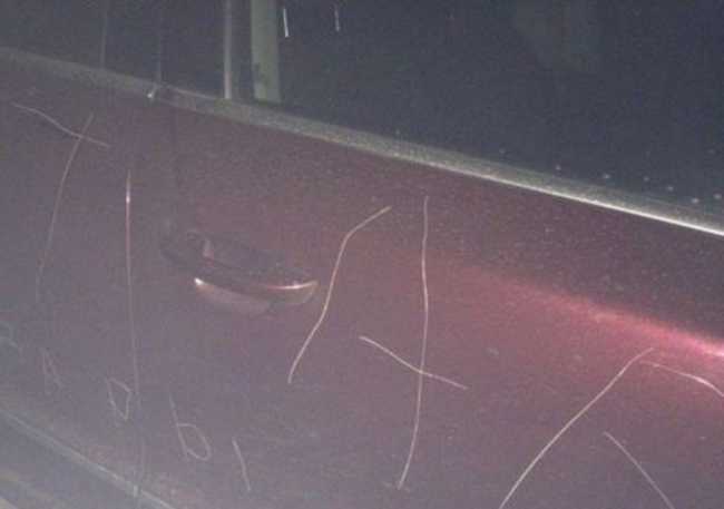В Симферополе на иномарке нацарапали антитатарские надписи